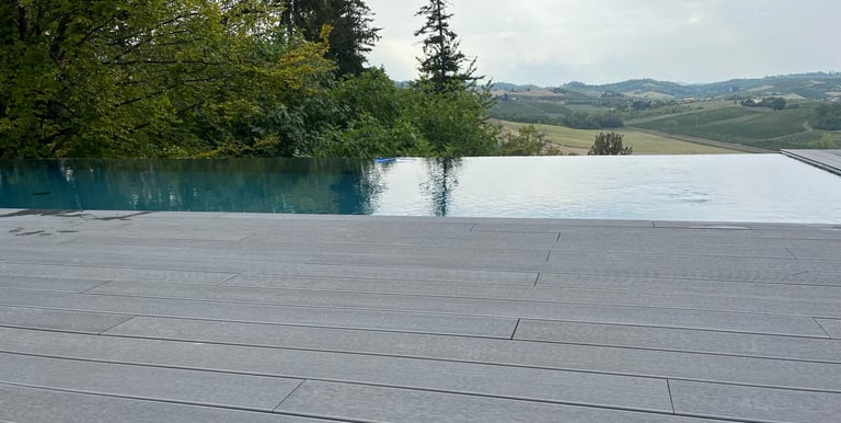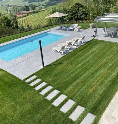 Nell’ambito della realizzazione di piscine, quest’attività è specializzata nelle opere a corredo tipo di spazi pavimentati, solarium, zona d’ombra e relax, aree verdi e tantissimo altro.
